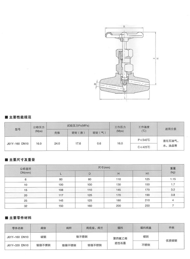 针型阀J61Y